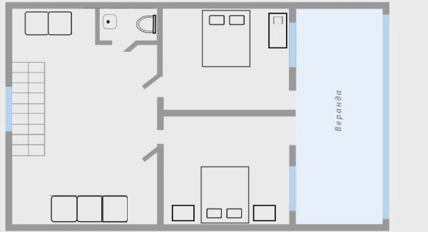 Уютный двухэтажный коттедж вместимостью до 10-ти человек с верандой и видом на лес.