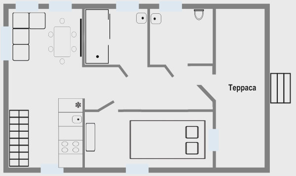 Рядом с коттеджем располагается зона для отдыха и Банный комплекс.
